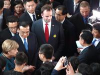 Die Bundeskanzlerin und der chinesische Ministerpräsident nutzten die Gelegenheit für ein kurzes Gespräch mit den LOGinCHINA-Studierenden. Auf die Frage Schüllers nach der künftigen wirtschaftlichen Bedeutung der Logistik, betonte Li, dass die Logistik in China ein überdurchschnittlich hohes Wachstum erwarte und somit auch sehr gute Berufschancen für die Absolventen bestünden. Merkel stellte heraus, dass nur durch eine funktionierende Logistik Zukunftsthemen wie Industrie 4.0 realisierbar seien.