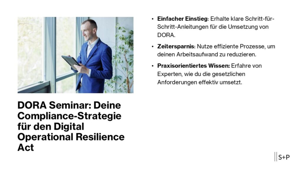 Ab 2025 wird die digitale Resilienz zur Pflicht. Erfahre, wie du mit dem DORA-Seminar von S+P…