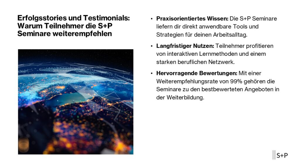 Erfahre, wie Teilnehmer durch S+P Seminare profitieren und warum sie diese für Karriere und Praxis erfolgreich…
