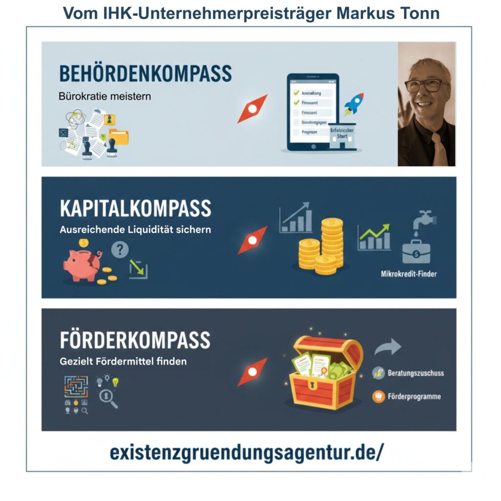 3 Komponenten für den Erfolg: Markus Tonn bündelt mit der Existenzgründungsagentur die Lösungen gegen Gründungschaos: Behördenkompass,…