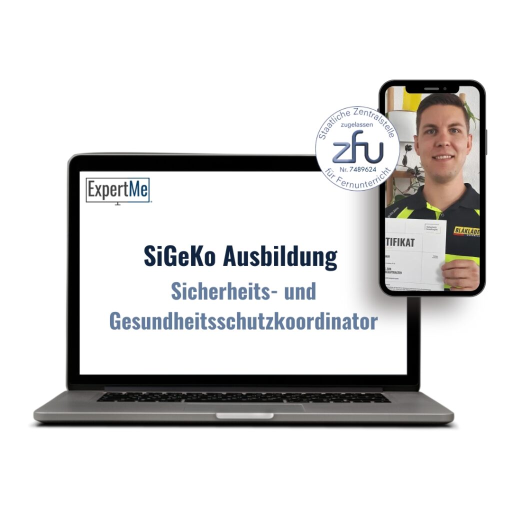 Die ExpertMe Akademie bietet eine flexible und gesetzeskonforme Online-Weiterbildung für angehende Sicherheits- und Gesundheitsschutzkoordinatoren (SiGeKo)