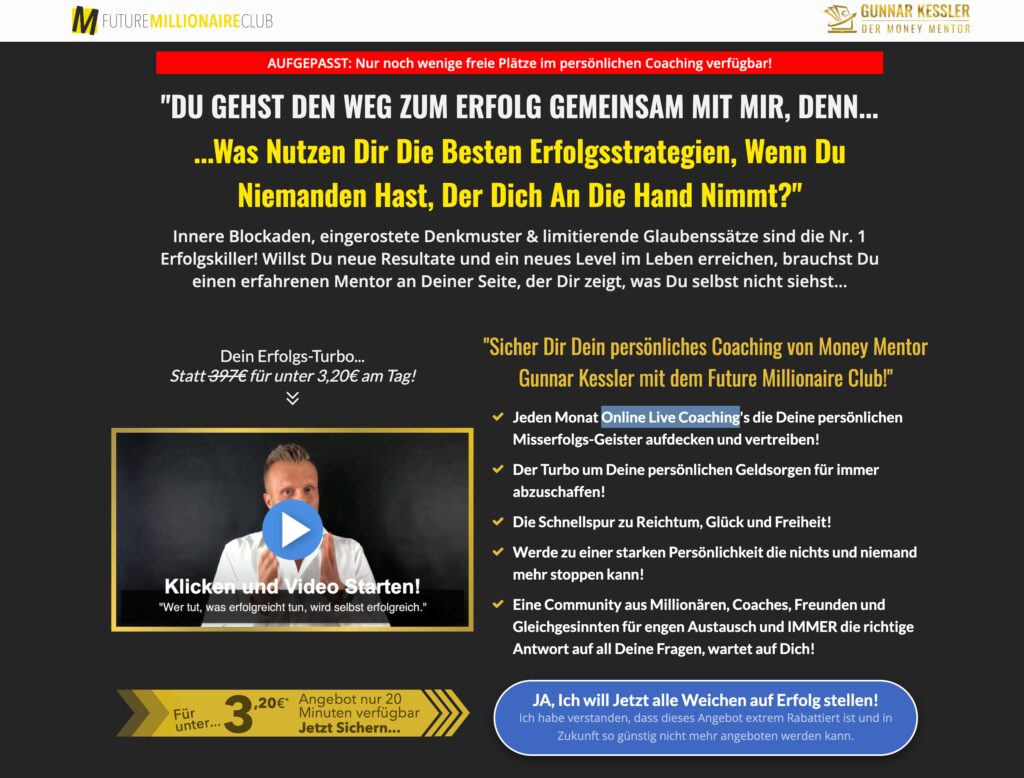 Sicher Dir Dein persönliches Coaching von Money Mentor Gunnar Kessler mit dem Future Millionaire Club!