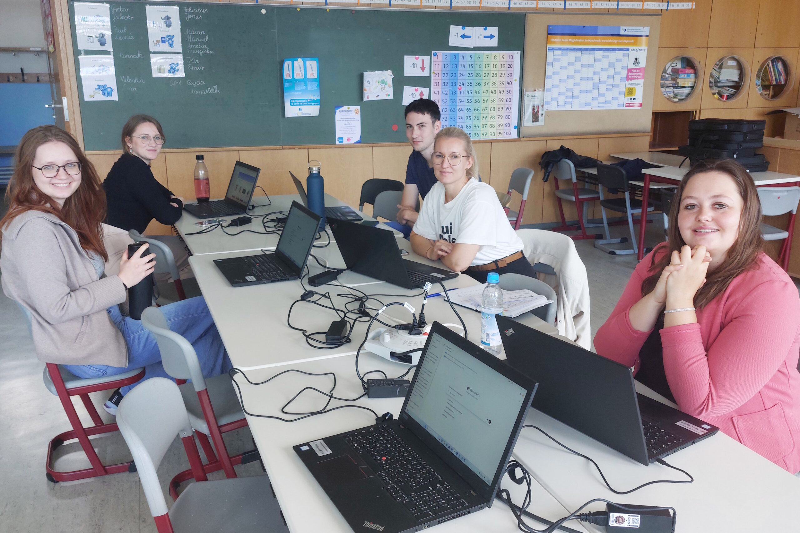 Ein Höhepunkt war der Beitrag von FORUM: Die Gruppe der Auszubildenden und Studierenden war von Montag bis Donnerstag dabei und begleitete die Kinder bei einer kreativen Station, an der sie mithilfe der eigenentwickelten KI „FORUM ArtPlus“ eigene Motive – etwa Cartoon-Charaktere, Tiere oder Autos – digital erstellen konnten. Dafür rüstete Forum ein Klassenzimmer mit sieben Laptops und einem Drucker auf. Nach einer Einführung und unterstützt durch Handouts wurden die Bilder auf Transferfolie aufgebracht und auf Stoffmäppchen gebügelt, die anschließend im MiniStadt-Shop gegen verdiente „Merching-Taler“ erworben werden konnten.