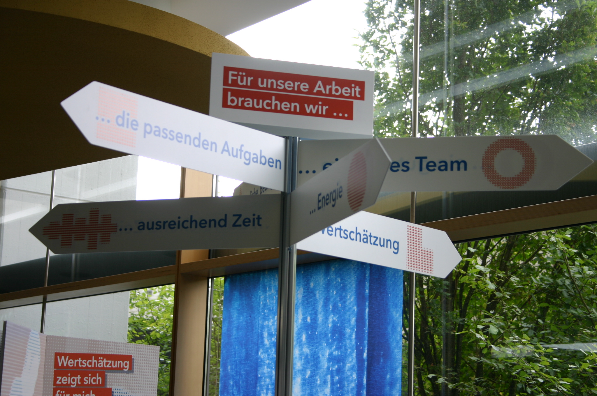 Die Wanderausstellung „Für meine Arbeit brauche ich?“ ist ein Gemeinschaftsprojekt der Initiative Gesundheit und Arbeit (iga) ? eine Kooperation der Deutschen Gesetzlichen Unfallversicherung und der Krankenkassen und wird interessierten Unternehmen zur Verfügung gestellt. Die zentrale Frage „Was brauchen wir, um erfolgreich zu arbeiten?“ wird anhand von Ausstellungstafeln mit Interviews und Praxisbeispielen den Beschäftigten näher gebracht. Auch das BFW München nutzte hierbei die Gelegenheit, die Ausstellung in der KW 37 in der Eingangshalle allen Rehabilitanden und Mitarbeitern zur Verfügung zu stellen. Verschiedene Unterthemen wie Wertschätzung, Energie, verlässliche Bedingungen, ausreichend Zeit, etc. regten die Besucher zum aktiven Austausch und Nachdenken an und gaben zusätzliche Tipps und Handlungsempfehlungen für den Arbeitsalltag. Die Gesundheit als wertvollstes Gut für den Einzelnen und die Gesellschaft soll lange erhalten bleiben. Gesundes Arbeiten kann hierfür ein entscheidender Schritt sein, von dem langfristig alle profitieren.